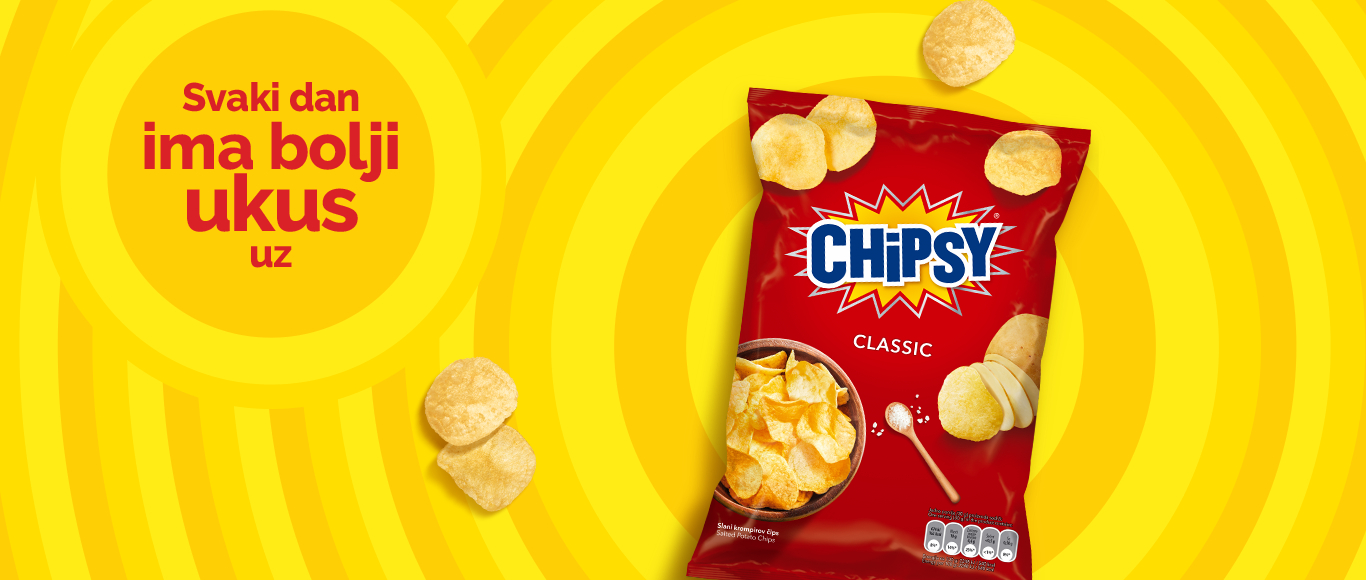 Chipsy ima misiju da uljepša svaki tvoj trenutak uživanja u filmovima, muzici, fudbalu, košarci i druženju sa prijateljima. Zahvaljujući raznovrsnoj ponudi ukusa i oblika, svako će pronaći svoj savršeni Chipsy bez obzira na to da li traži nešto klasično, možda začinjenije ili pak posno. Trudimo se da uvijek budemo tvoj saigrač: od uživanja u utakmicama Lige šampiona, pa do velikih muzičkih festivala, zato što želimo da svaki tvoj dan ima bolji ukus uz Chipsy.